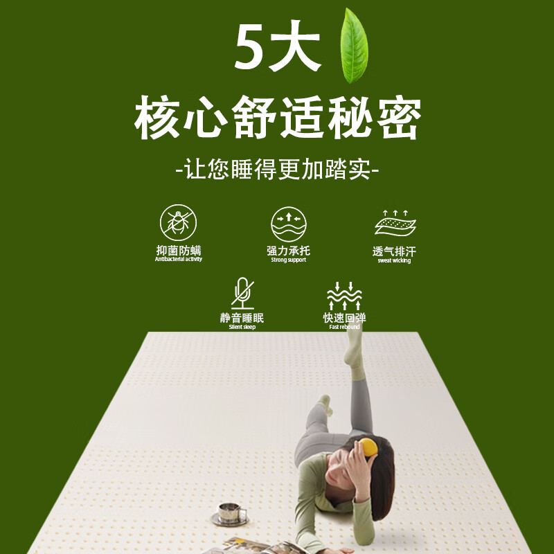 • 国产泰奢(PICJOUIR)天然乳胶床垫单人垫子 【天然乳胶垫】3cm厚+透气网套 90X190cm