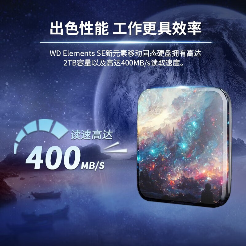 • 西部数据(WD)移动固态硬盘(PSSD)Elements SE新元素SSD 便携迷你1TB WDBAYN0010BBK/XCDH