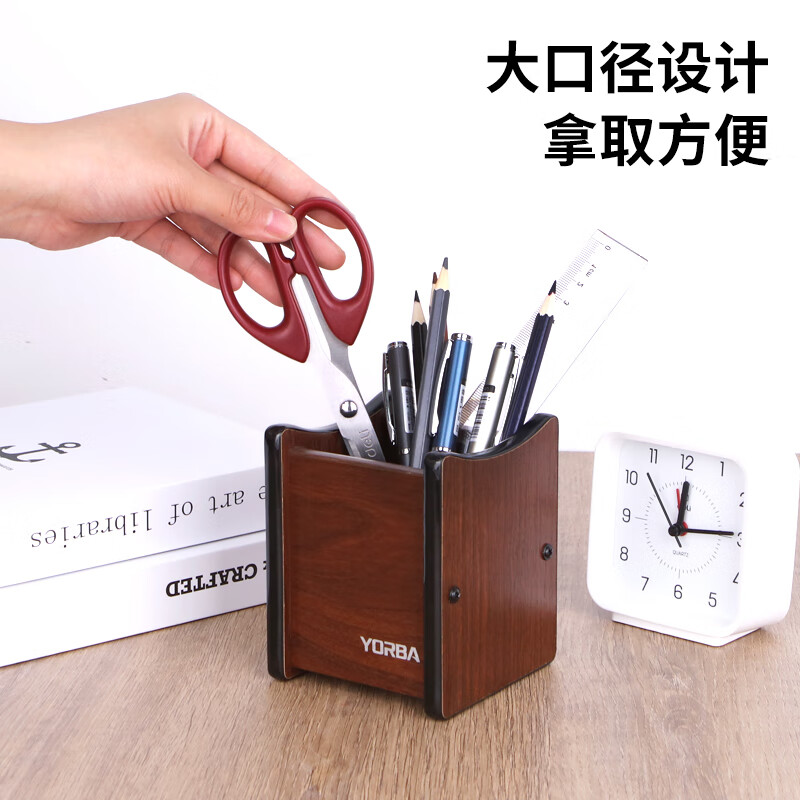 • 优必利 木质笔筒桌面收纳盒 方形笔筒 办公桌整理架商务桌面收纳 6002A