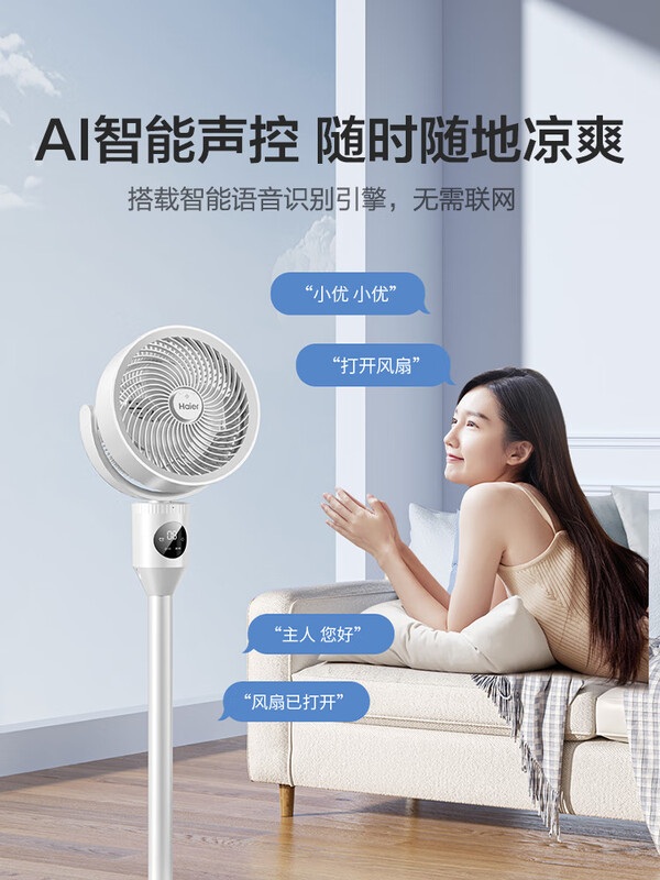 海尔(Haier)空气循环扇语音遥控香薰抑菌交流定频电风扇家用卧室轻音风扇落地扇省电台式小风扇空调扇HFX-Y00A
