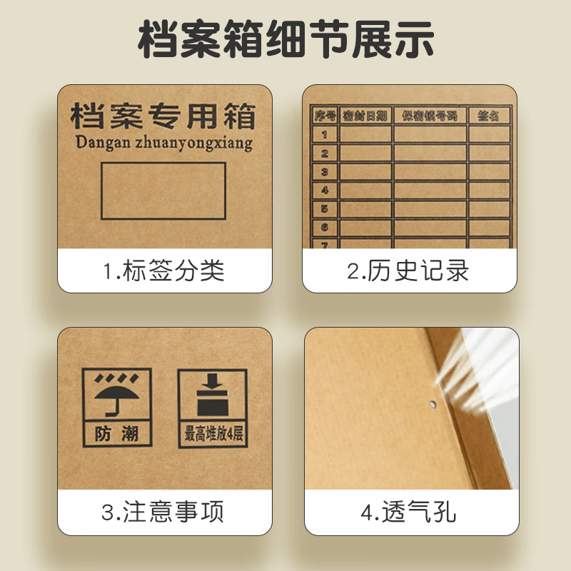 • 国产简意档案专用箱会计凭证收纳箱大容量加厚牛皮纸箱档案箱40*35*25cm1个