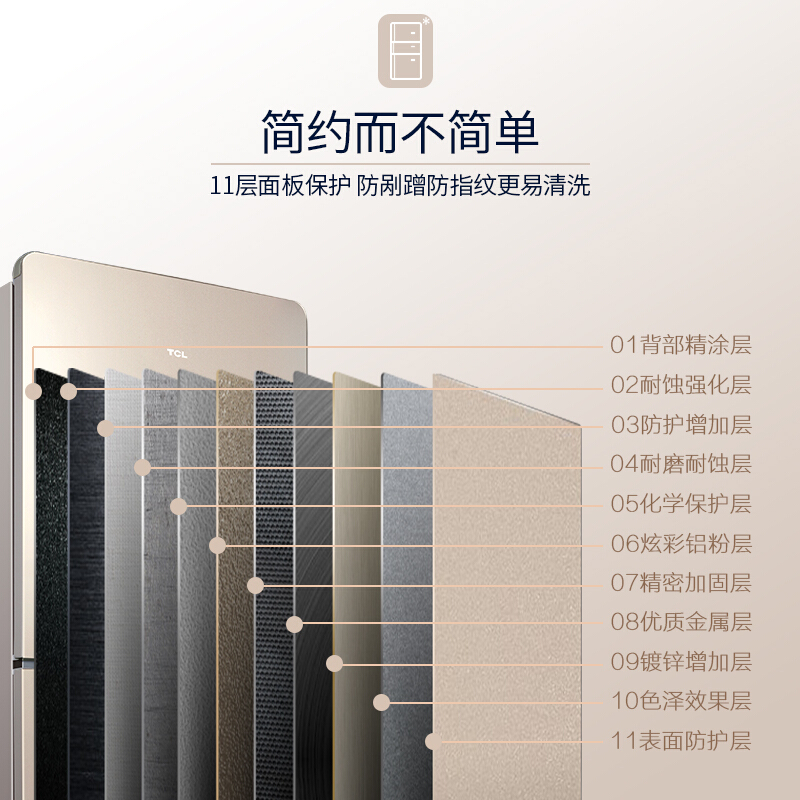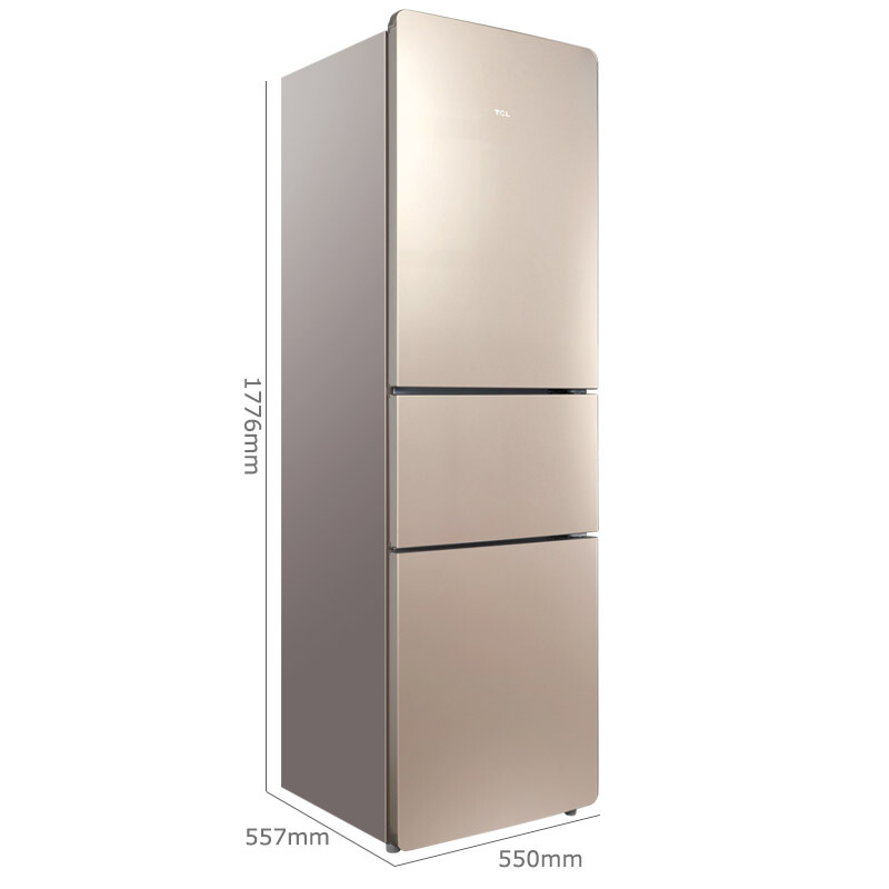 • TCL BCD-216TF1 216升 三门冰箱 三门三温区中门软冷冻 实用电冰箱小型便捷大冷藏 节能养鲜 (流光金)