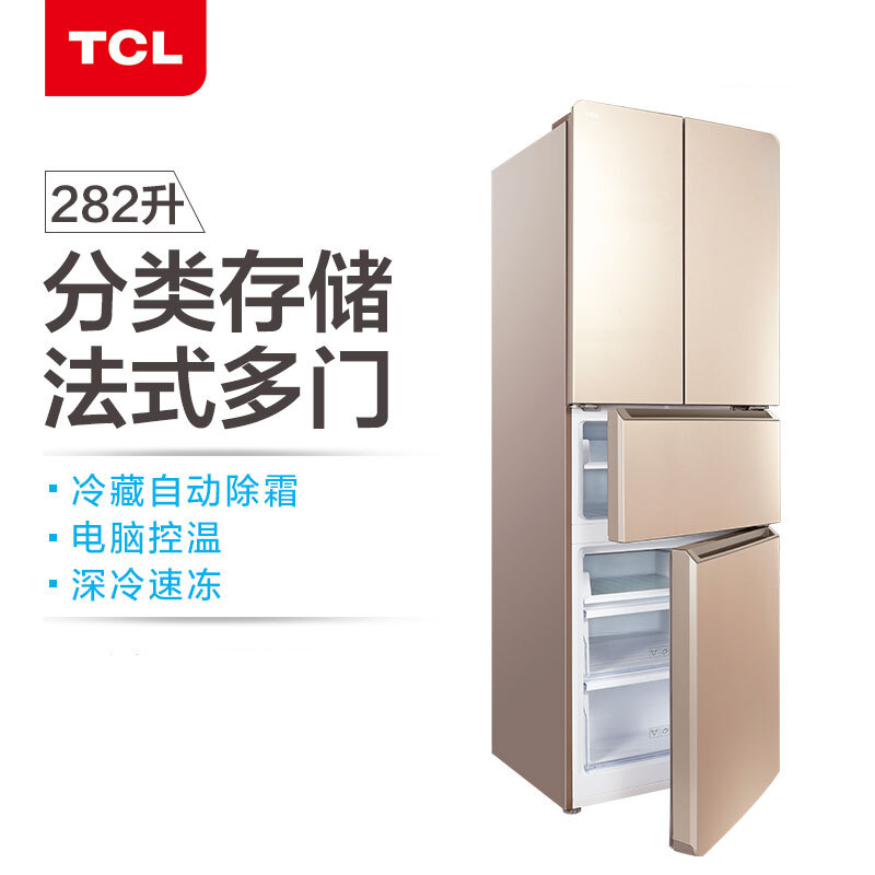TCL BCD-282KR50 282升 冷藏自动除霜法式多门电冰箱 电脑温控 深冷速冻 一体成型(流光金)