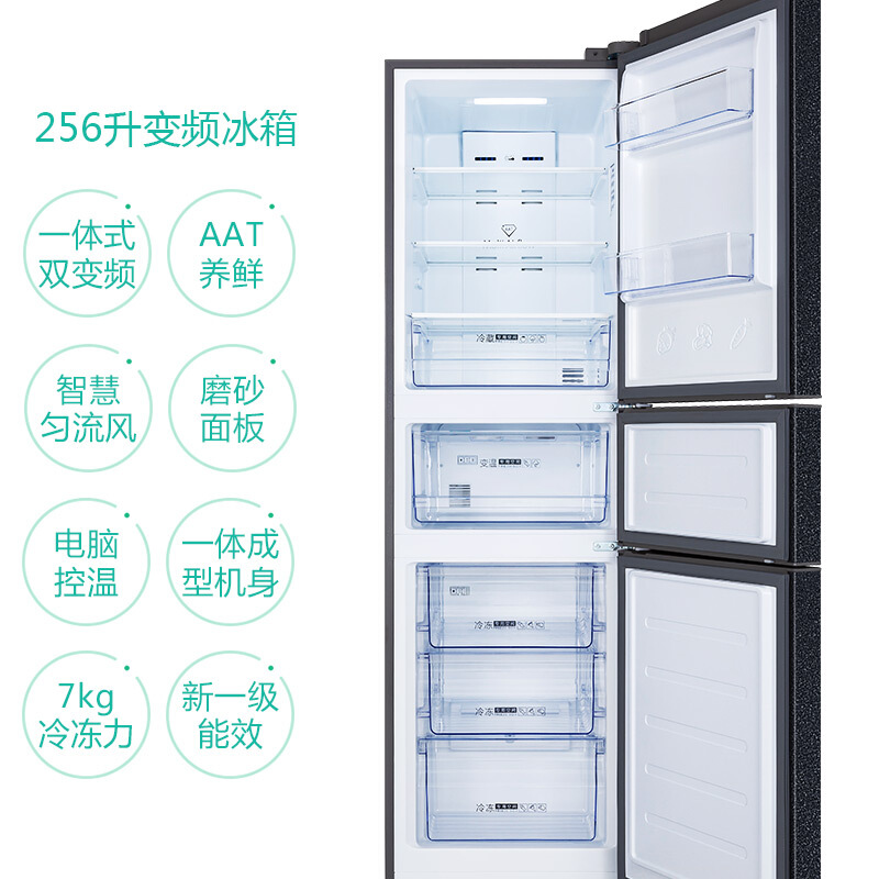 TCL BCD-256WPJD 256升 双变频风冷无霜三门电冰箱 AAT养鲜 电脑温控 一级能效 星玄青