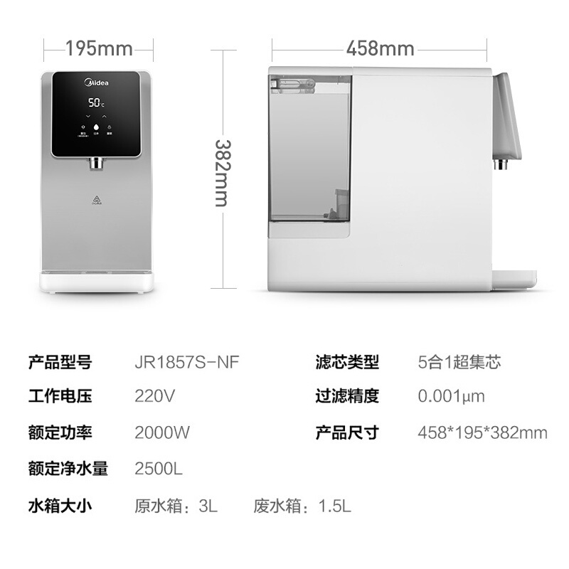 美的JR1857S-NF/JT100 饮水机 家用净水机即热台式直饮机净水器免安装净饮一体机零混水