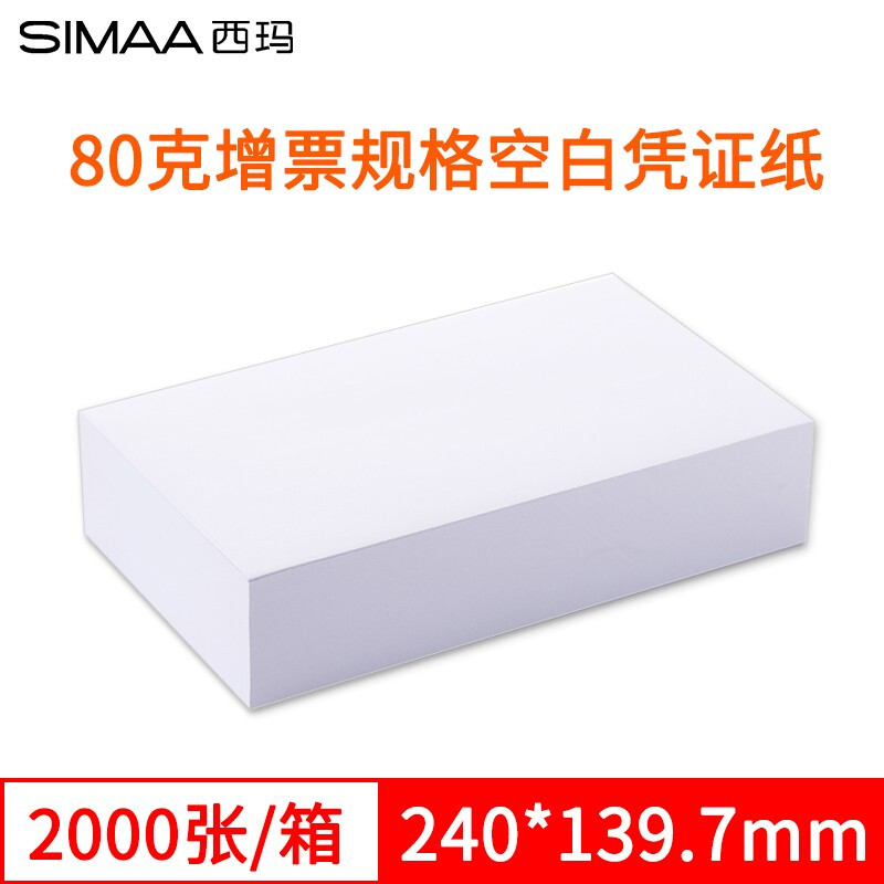 - 西玛SJ500110 发票版空白凭证纸 241*139.7mm 增票规格记账凭证纸 2000份/箱 241*139.7