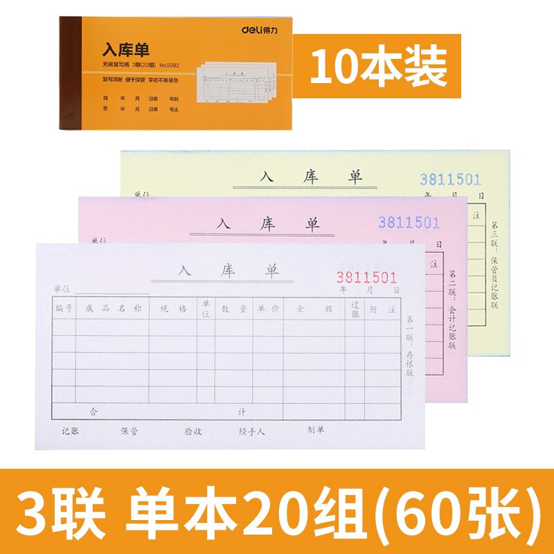 • 得力 9392 送货单 销货单 二联三联 仓库出货单据 领料单 入库单 出库单 收据三联入库单据(10本)