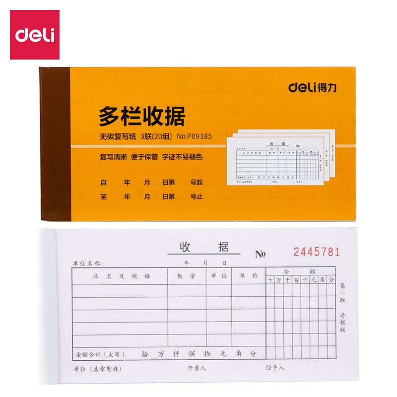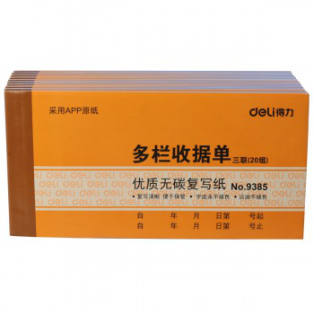 得力(deli) 送货单 销货单 二联三联 仓库出货单据 领料单 入库单 出库单 收据 9385三联多栏收据(10本)