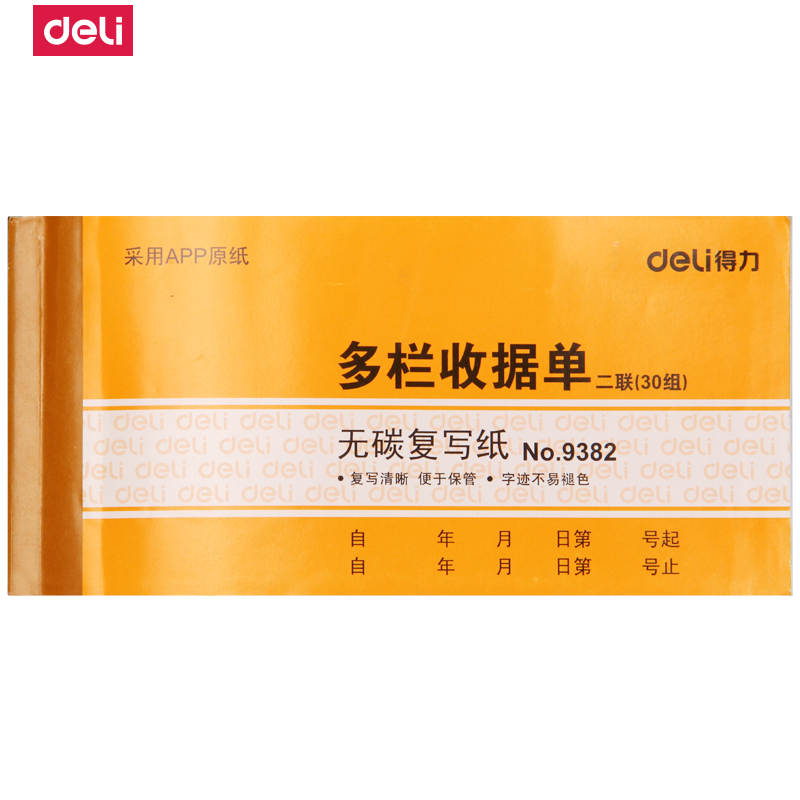 得力(deli) 送货单 销货单 二联三联 仓库出货单据 领料单 入库单 出库单 收据 9382二联多栏收据(10本)