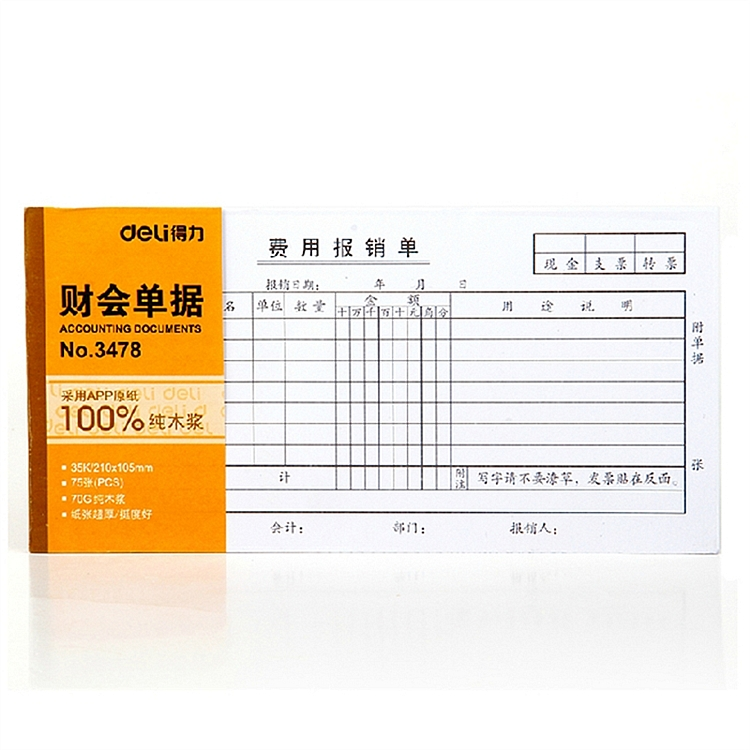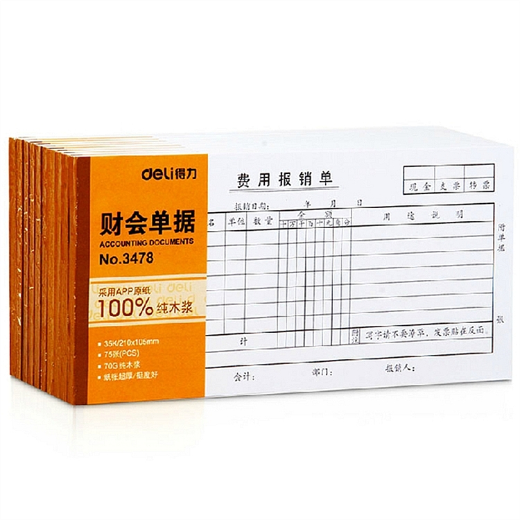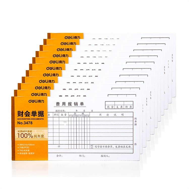 得力(deli)财会单据凭证票据单据 办公用品 费用报销单3478 十本装