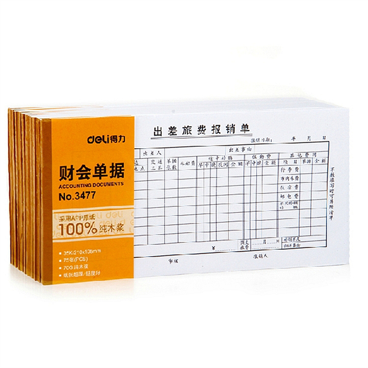 • 得力3477 财会单据凭证票据单据 办公用品 差旅费报销单 十本装