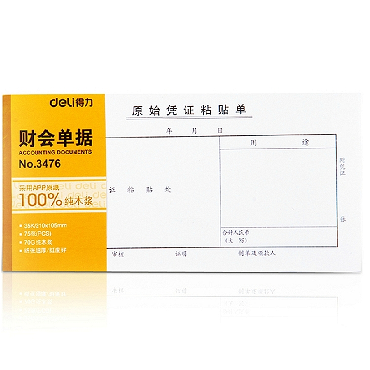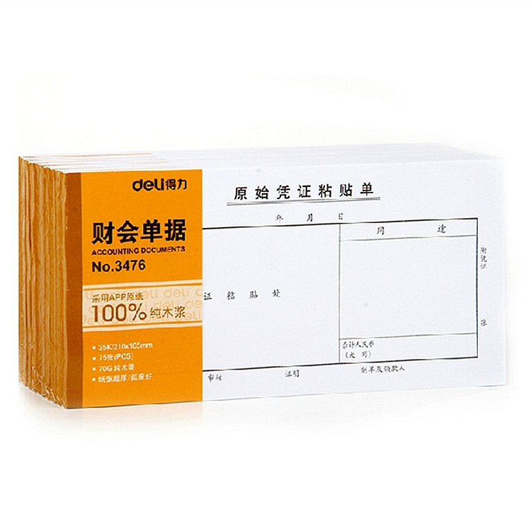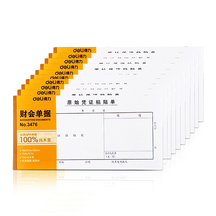 得力(deli)财会单据凭证票据单据 办公用品 原始凭证粘贴单3476 十本装