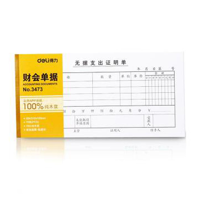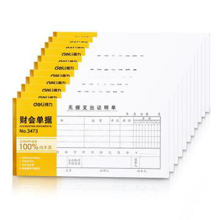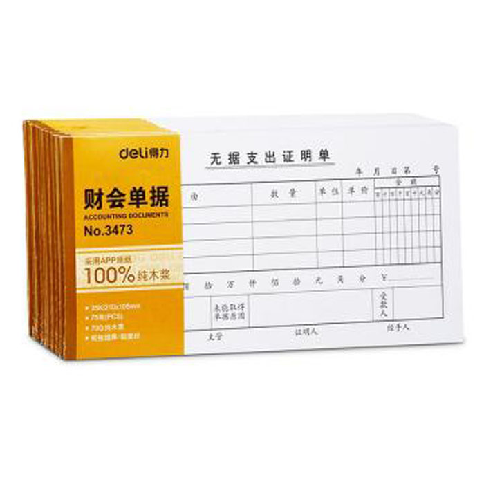 • 得力3473 财会单据凭证票据单据 办公用品 无据支出证明单 十本装