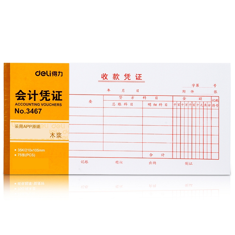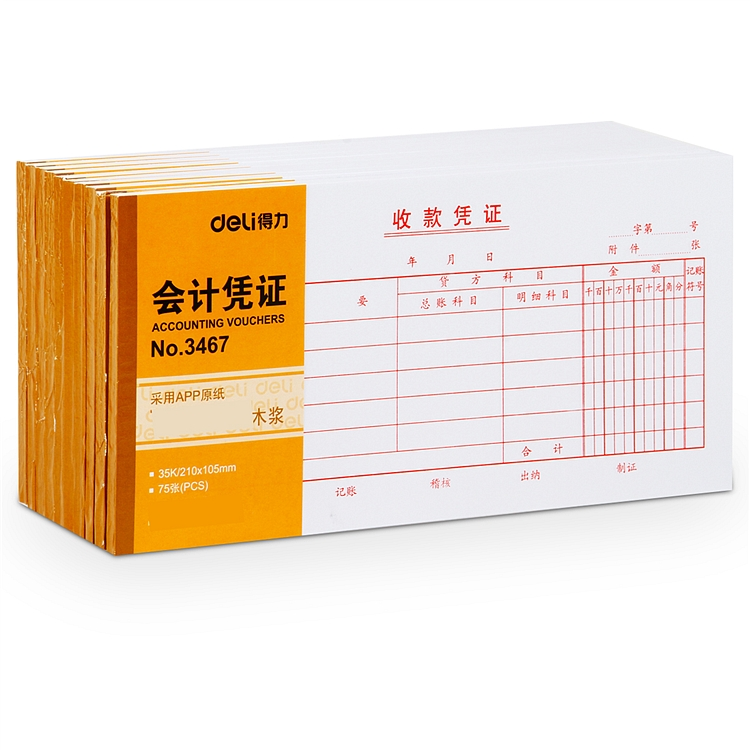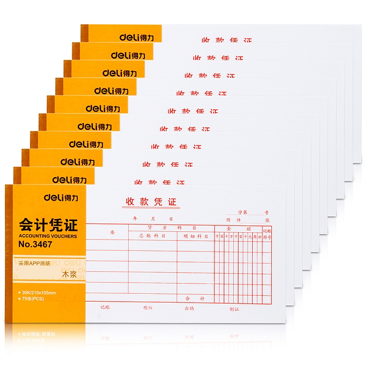 得力(deli)财会单据凭证票据单据 办公用品 收款凭证3467 十本装