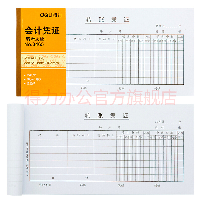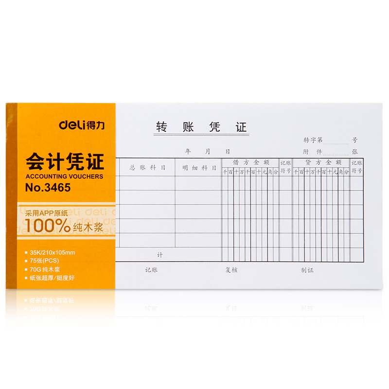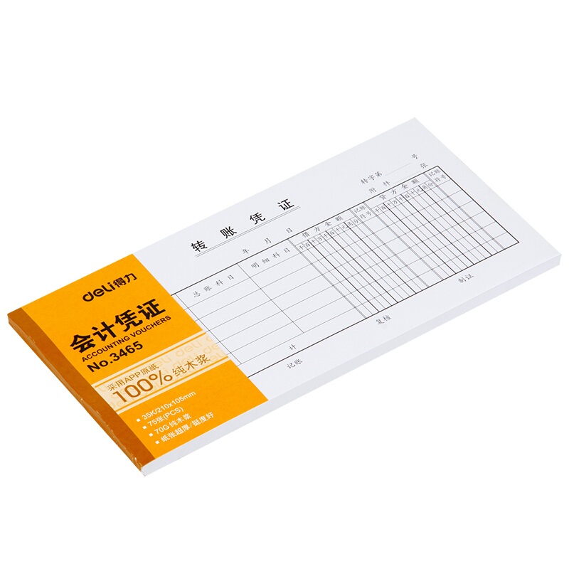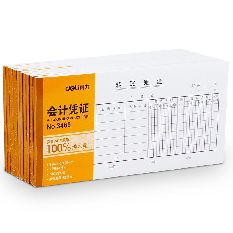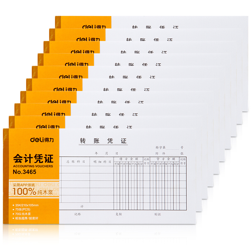 • 得力3465 财会单据凭证票据单据 办公用品 转账凭证 十本装