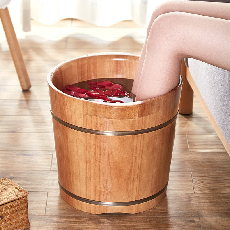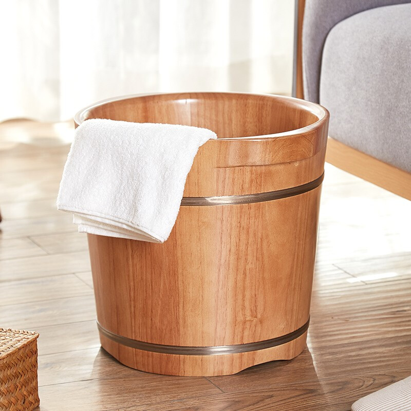 • 橡胶木泡脚桶木桶泡脚盆实木加厚洗脚盆按摩足浴桶 高34cm(无穴位无盖)+艾草足浴包