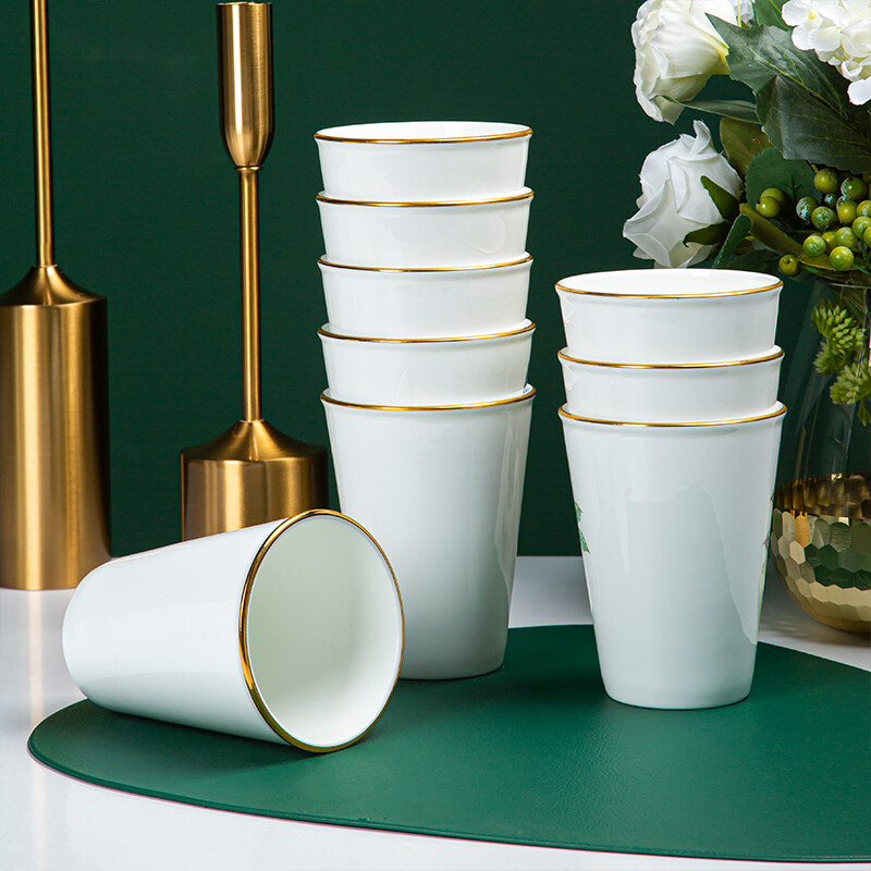 • 陶相惠 茶杯陶瓷描金大号可乐杯商务接待会议杯450ml