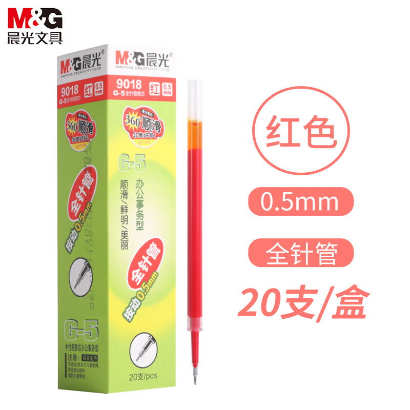 晨光(M&G)文具0.5mm红色中性笔替芯 经典按动款签字笔替芯 G-5全针管系列水笔芯