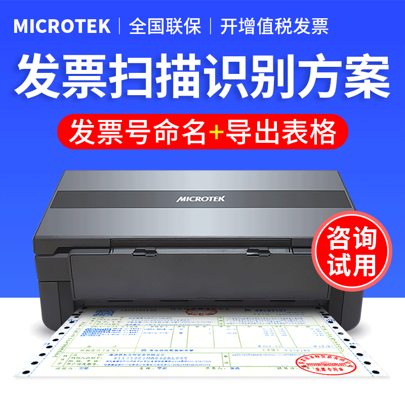 • 中晶(microtek)2688H 专业财务发票识别扫描仪A4 导出Excel表格 发票号命名