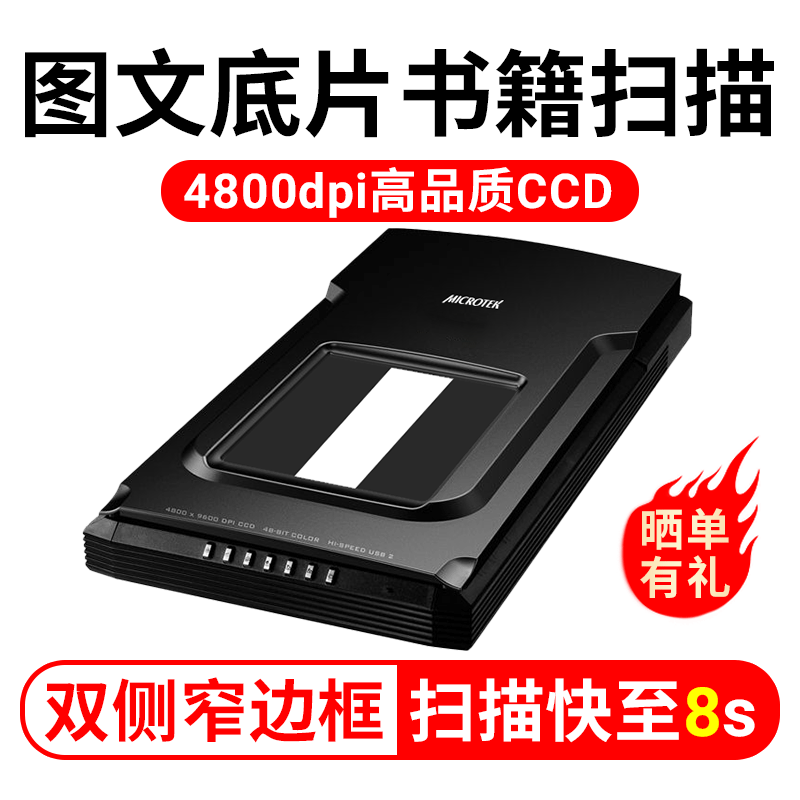 • 中晶(microtek)i450 照片文件胶片书籍扫描仪A4 高清快速短边距平板扫描仪