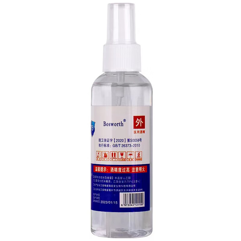 • Bosworth 75%酒精消毒喷雾乙醇消毒液便携式家用家具衣物皮肤物品清洁手部免洗速干 100ml/瓶 (1瓶)