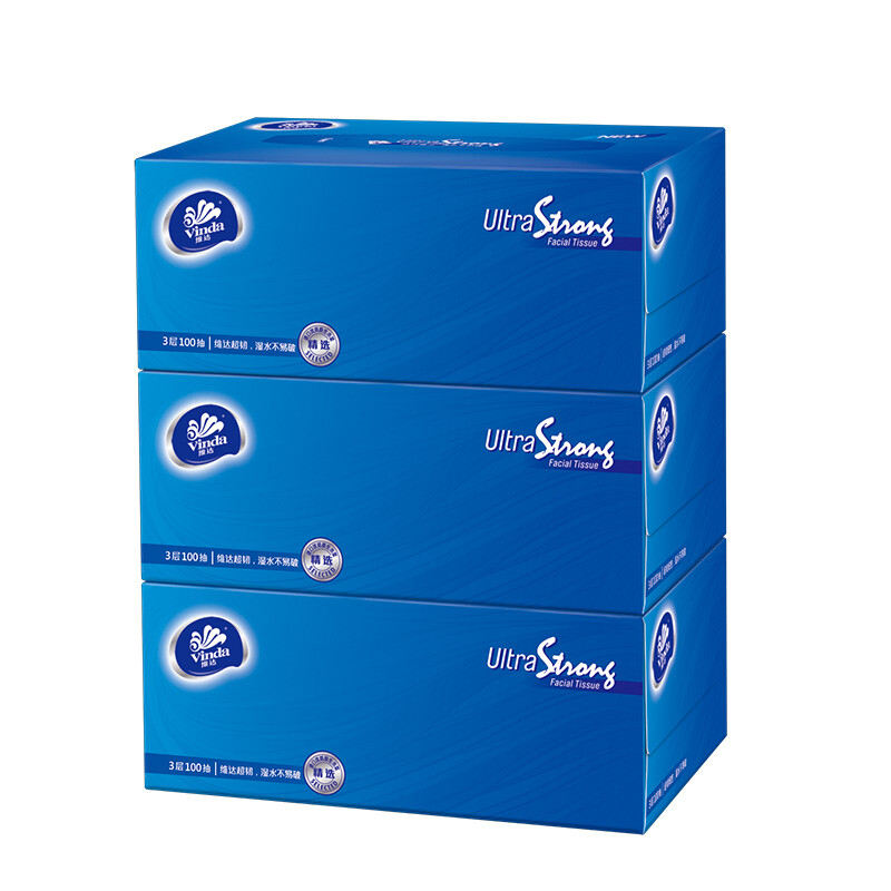 • 维达(Vinda) 抽纸/盒抽 超韧3层100抽盒装*3盒 抽取式面巾纸 纸巾(中规格)