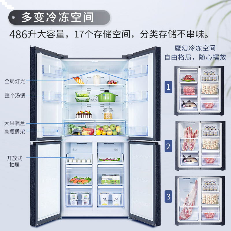 TCL 486升 双变频风冷无霜十字对开门电冰箱 AAT养鲜 电脑控温 一级能效 星玄青 BCD-486WPJD