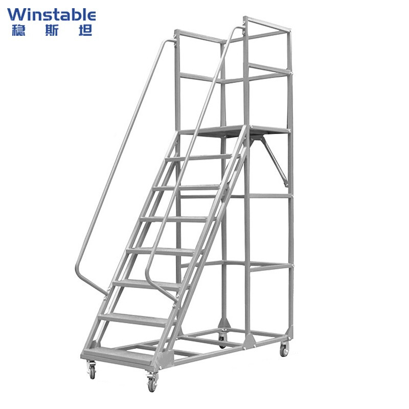 • 仓库超市移动平台梯 取货梯子凳子理货架防滑登高梯车带轮子 平台离地1.8米 W511 (需自行安装)