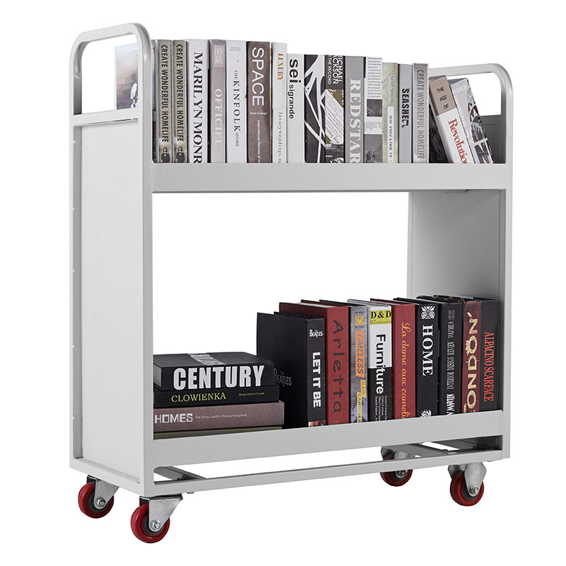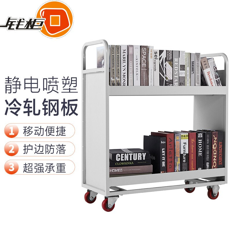 钱柜 图书馆书车学校书店手推车档案室移动顺滑小推车 二层平板-带护边