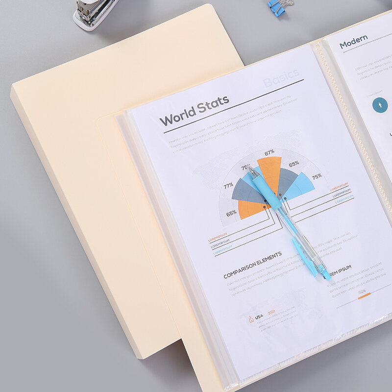 • 齐心EA2036 米黄A4/60页资料册/插袋文件册/活页文件夹/文件收纳袋