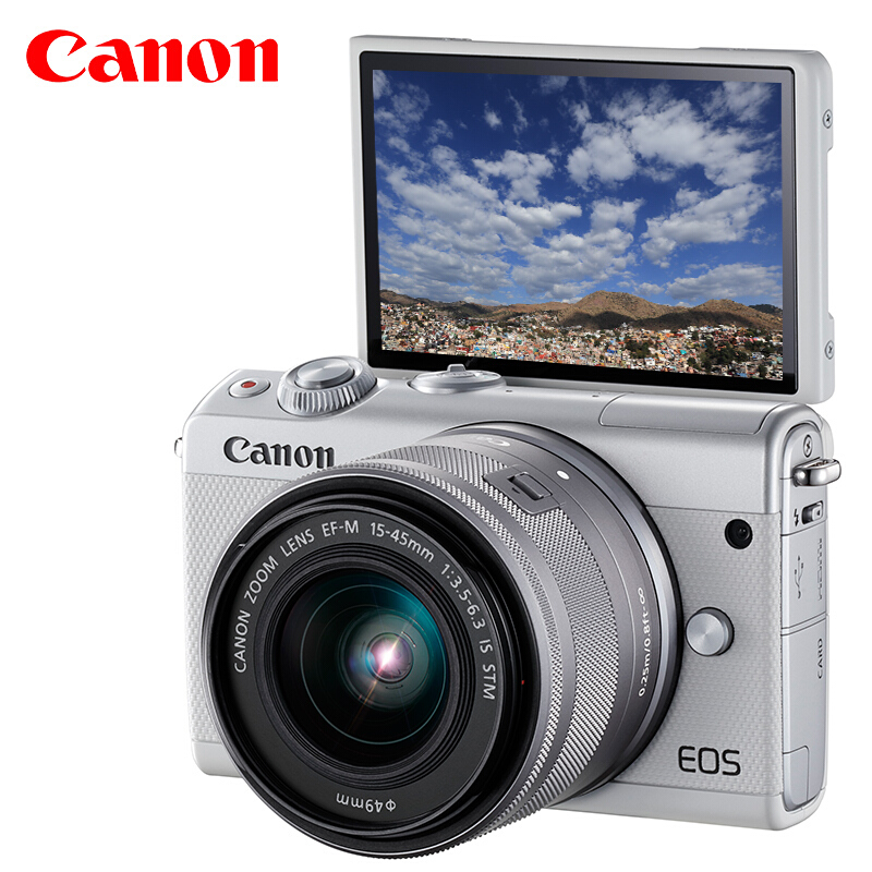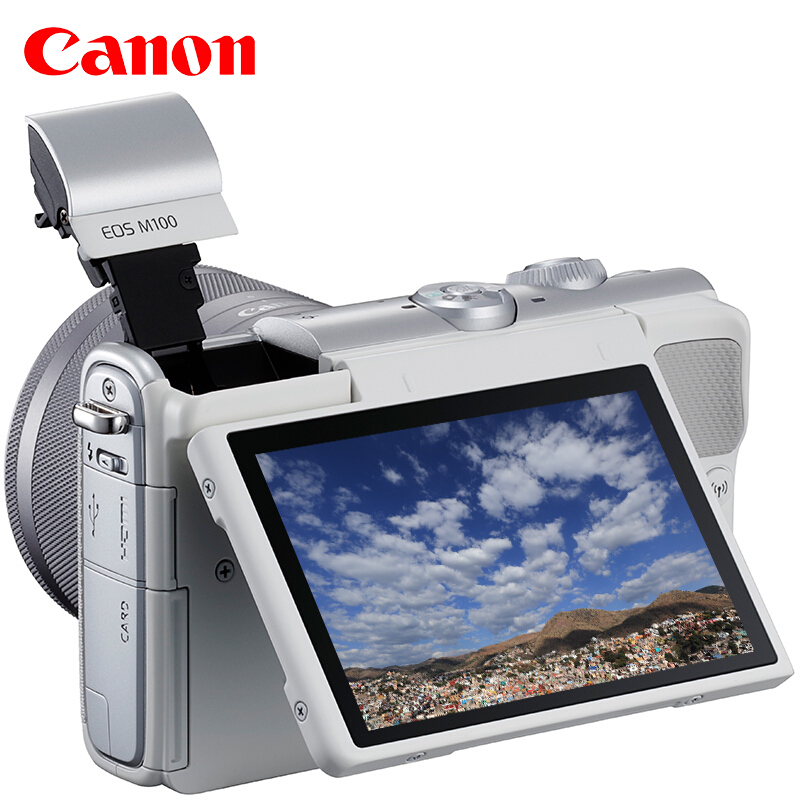 佳能(Canon)EOS M100 微单相机 数码相机 微单套机 白色(15-45 微单镜头镜头)