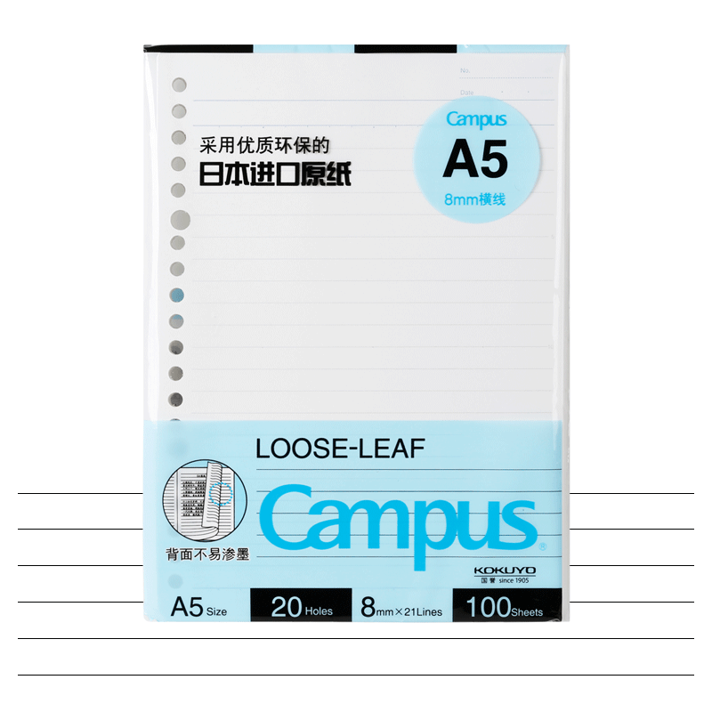 国誉(KOKUYO)活页本替芯方格笔记本子记事20孔26孔内芯文具手帐本夹线圈网格错题空白替换芯 A58mm横线100页