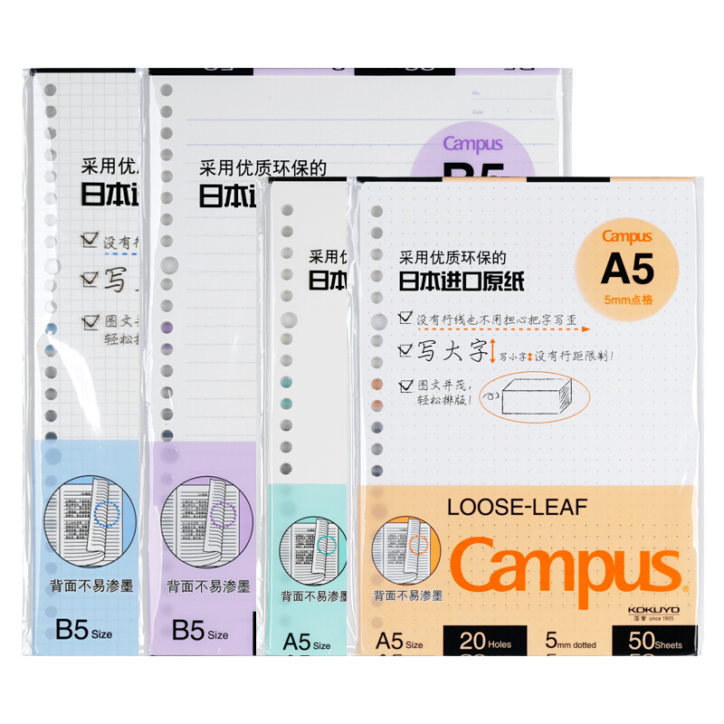 • 国誉活页本替芯方格笔记本子记事20孔26孔内芯文具手帐本夹线圈网格错题空白替换芯 A58mm横线100页