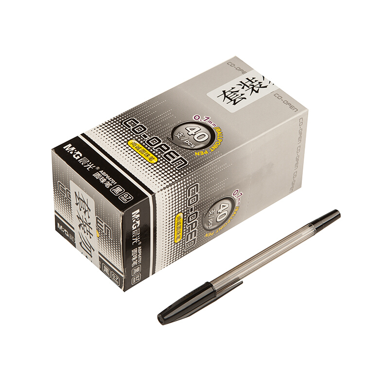 • 晨光ABP64701 文具0.7mm黑色简约办公圆珠笔 子弹头原子笔 便携中油笔 40支/盒
