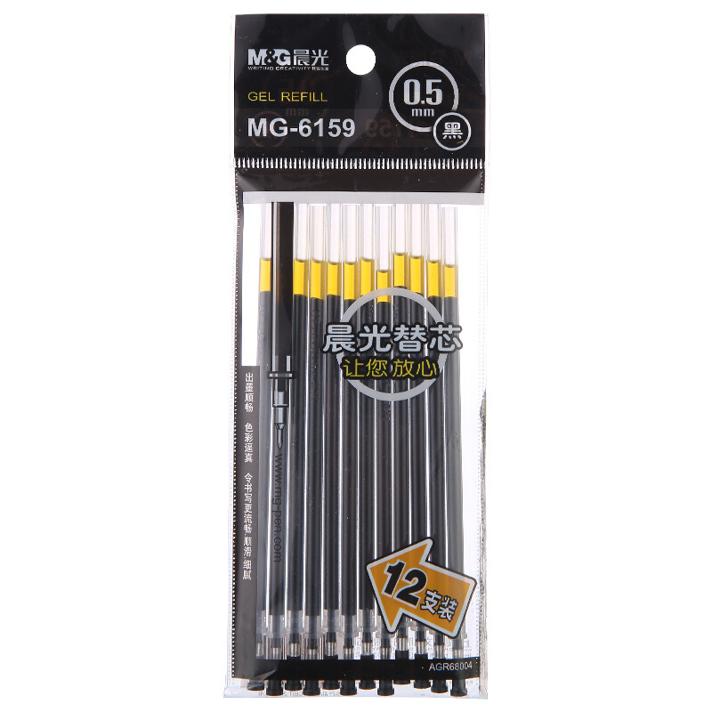 晨光(M&G)文具0.5mm黑色学生考试中性笔芯 葫芦头签字笔替芯 实惠装水笔芯 12支/盒MG6159