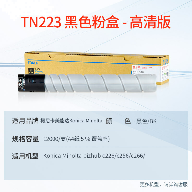 • 天威 适用美能达c226粉盒 tn223低容黑色碳粉 柯尼卡美能达Bizhub C266 C256墨粉盒C7222 C7226复印机硒鼓