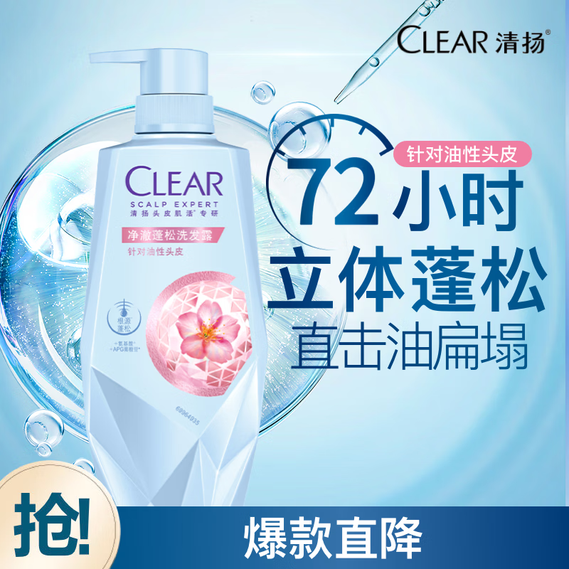 清扬头皮护理洗发水蓬松控油去屑洗发乳 净澈蓬松480g