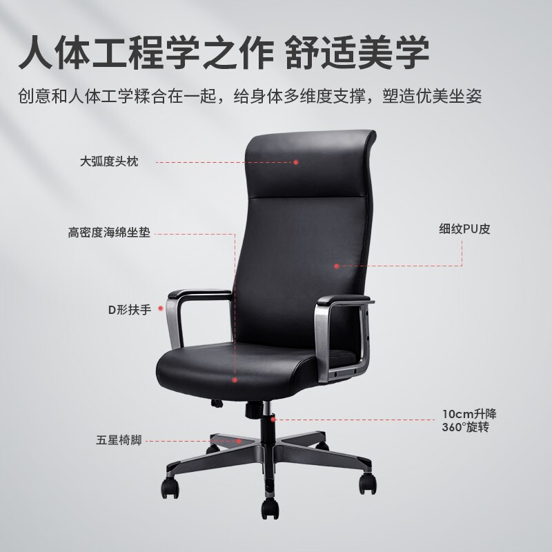 得力(deli)91000电脑椅 家用办公椅 转椅人体工学皮椅子 老板椅
