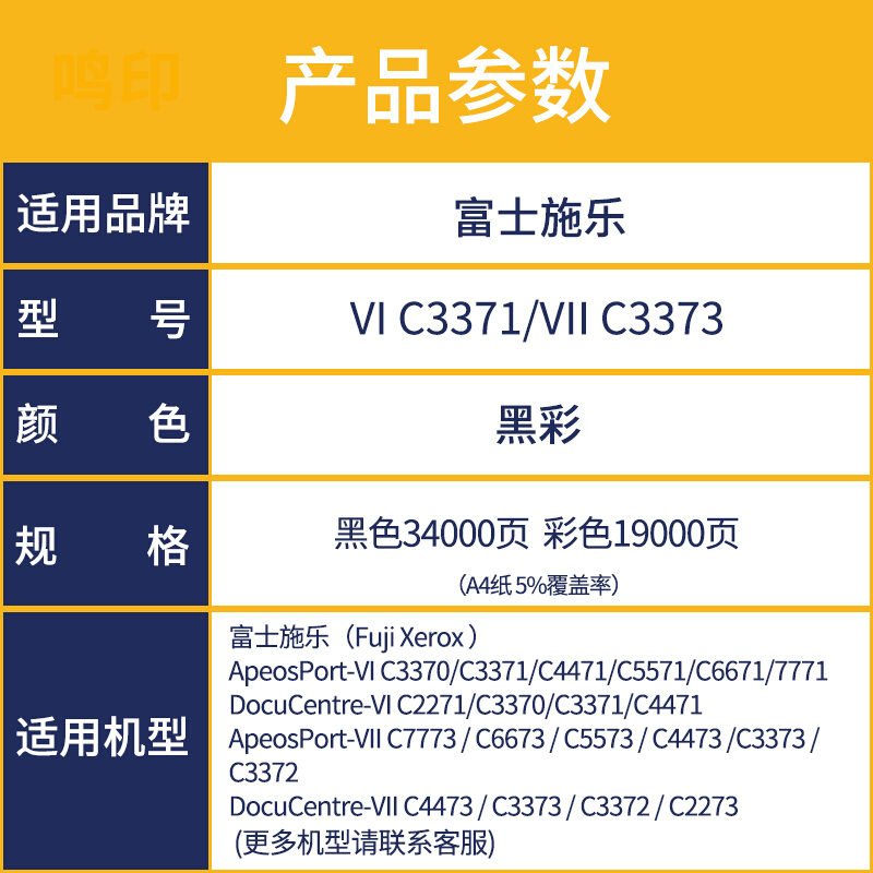 - 鸣印适用施乐VI/VII C3371 C3373粉盒C3372碳粉4473 2273墨盒4471墨粉 七代(VII)高清墨粉筒丨四色套装