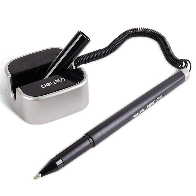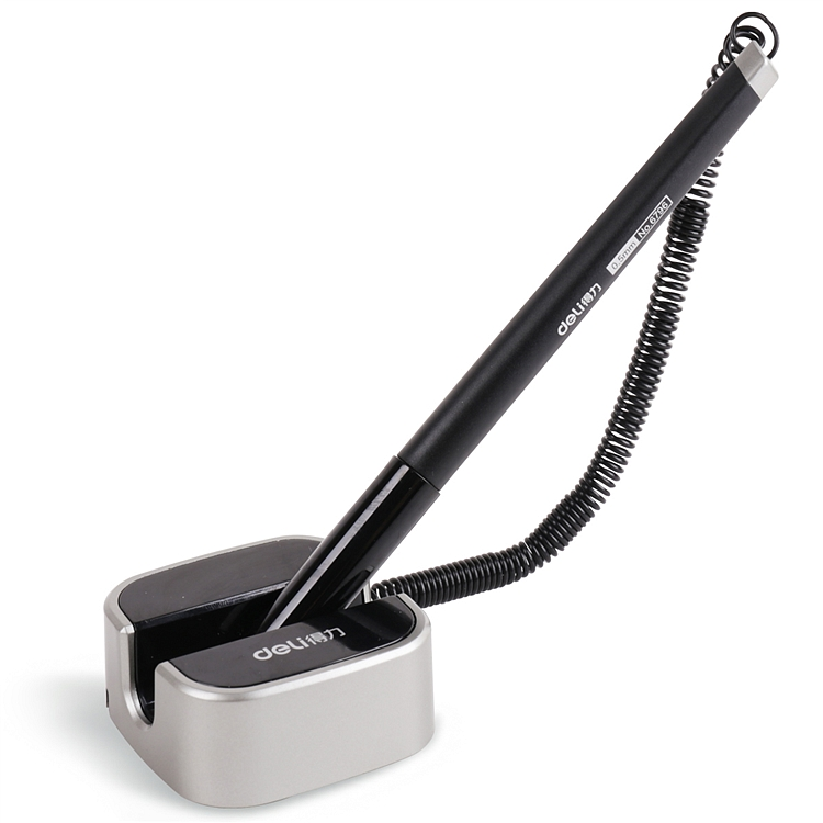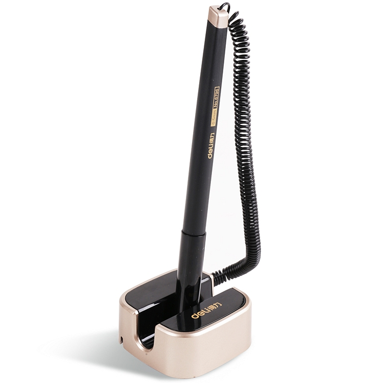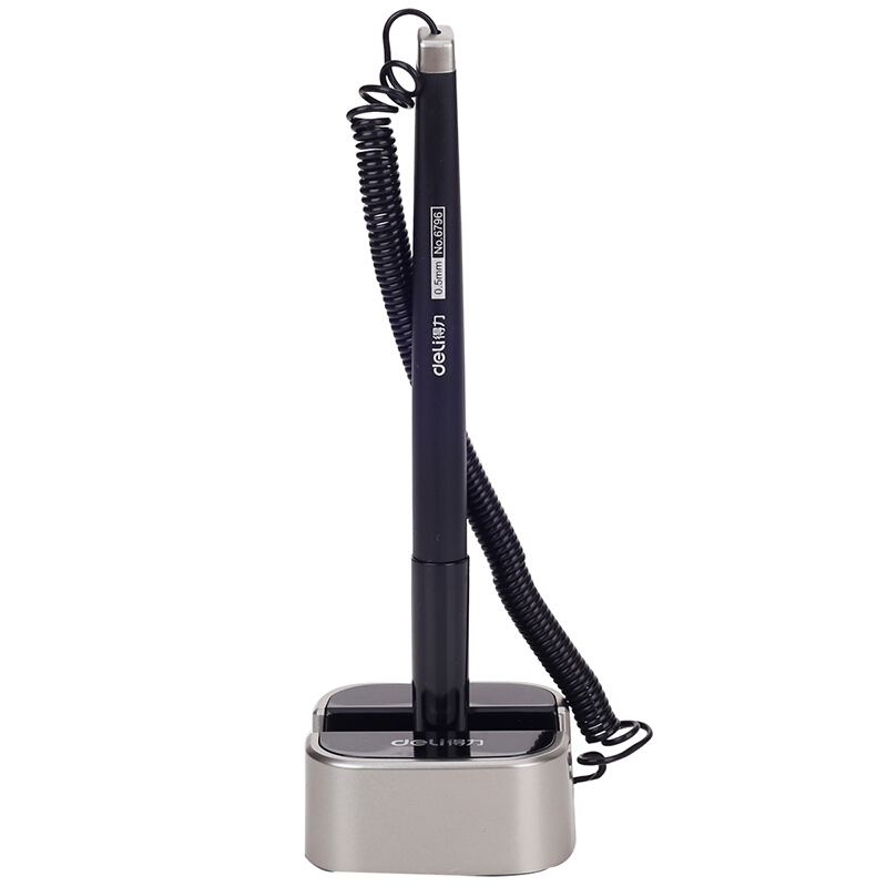 得力(deli)0.5mm商务办公桌面台笔签字笔 可粘贴台式中性笔单支 6796灰